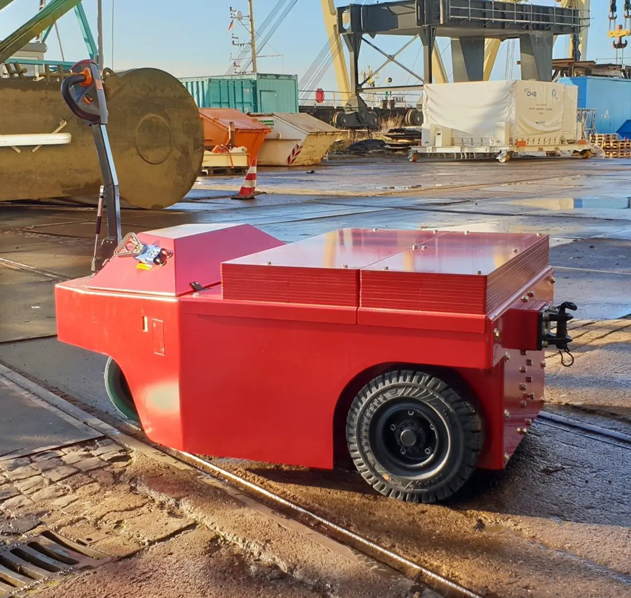 Il 3XL 30 To è un rimorchiatore industriale azionato da un operatore a terra, in grado di trainare fino a 30.000 kg.