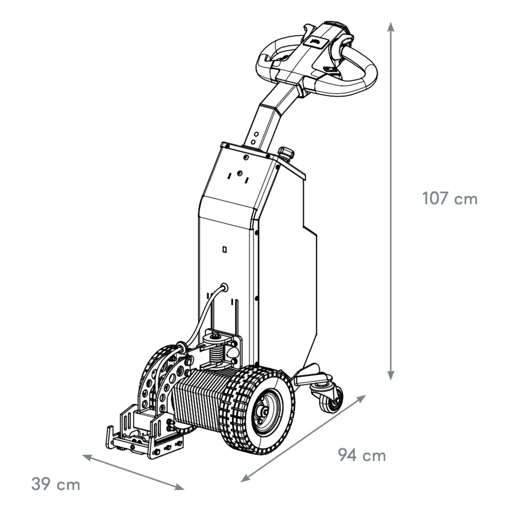 Questo trattore versatile ed economico per trainare e spingere 30 T è ideale per il trasporto di carichi anche negli spazi più ristretti. Questo trattore per impieghi gravosi è dotato di servosterzo che consente di spostare oggetti su ruote in modo fluido, sicuro e rapido. Con una forza di trazione orizzontale di 15.500 Newton, non è più necessario utilizzare il carrello elevatore per spingere e trainare rimorchi.